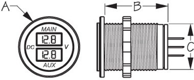 The Sea-Dog Dual Round Digital Voltmeter displays voltage for main and auxiliary batteries simultaneously. It has a red LED display and will install in any standard 1-1/8" socket hole.