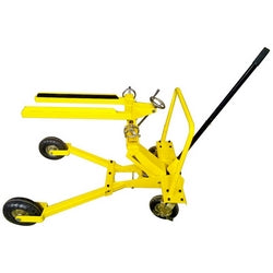 The Canada Metal Ltd. Sterndrive Installation Jack is a hydraulic jack which can safely and easily remove and install stern drives with just one operator. It features four pneumatic wheels for easy movement and a convenient handle for maneuvering the jack into place.